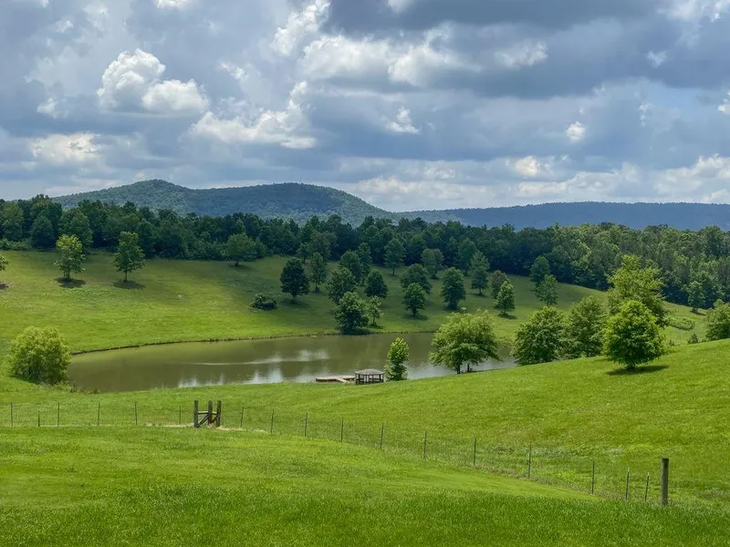 Smokey Mountain Like Views! 35 Acre Farm with 2 Acre Fishing Lake, Half Acre Pond, Barn and Fencing. 3,500 Sq. Ft. Full Brick Home with another 1,400 Sq. ft Finished Basement. Beautiful Country Front Porch Home with a Big Welcoming Foyer. Kitchen and Breakfast is open to the Cozy Den and Great Room. Sealed Unstained Oak Hardwood Floors throughout the Home. Master on the Main Level with Big Views of Pond and Pasture. Impressive Master Bath with Separate Tub and Tiled Walk-in Shower. Oversized Walk-in Closet with Shelves. Total 3 Closets in Master. Large Bonus Rooms Upstairs for additional Bedrooms, Office or Game Room or a Combination. Poured Concrete Foundation and Immaculate Electric Wiring. Basement is Finished with 2 Large Rooms, Office and Full Bathroom. Single Basement Garage for parking boat or vehicles. Plenty of parking room on back concrete driveway. Property is fenced for cattl...