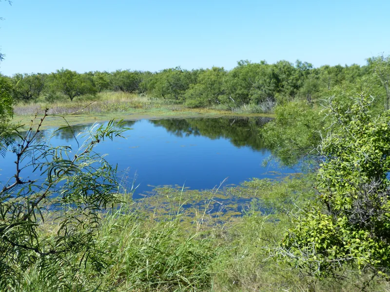 Water. A nice stock pond at the back of the property makes a good fishing and hunting spot. It is surrounded by trees and brush.
