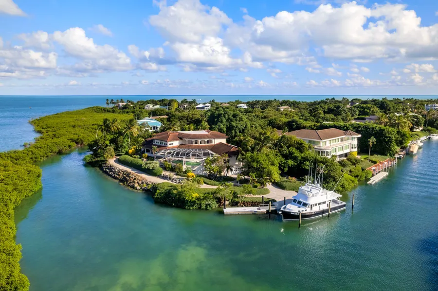 Quintessential Florida Keys Luxury awaits a most savvy buyer at 35 Cardinal Lane. One of the most prestigious lots at Ocean Reef boasting an impressive 356 feet of waterfront on a 42,750 square foot parcel offering abundant dockage. A golden opportunity awaits for an exquisite remodel or the creation of an unparalleled new custom residence. Nestled in a private setting, this location affords breathtaking vistas of Angelfish Creek, with captivating, panoramic water views. The current residence encompasses 8,415 square feet featuring four bedrooms, four and a half bathrooms, and a dedicated office space.