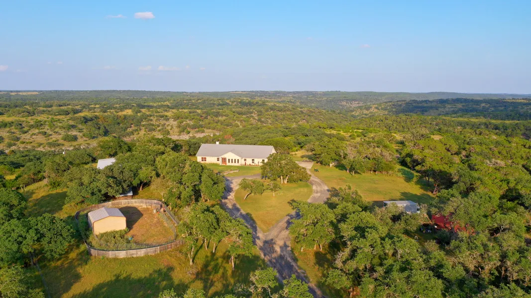 A RARE OPPORTUNITY TO OWN SMALL ACREAGE SURROUNDED BY A LARGE RANCH AND UNOBSTRUCTED VIEWS FOR MILES. For the discerning buyer wanting total seclusion off the beaten path, this custom built hill country rock home is ready for its new owner. The massive great room boasts a floor to ceiling stone fireplace with nice built-ins and a wet bar for entertaining. The great room opens to the kitchen with granite counters throughout, double ovens, walk-in pantry, large bar, and a breakfast area. Other features include a spacious formal dining room, large office with built-ins, big laundry/mud room with abundant storage, upstairs bonus room and additional climate controlled storage. The split floor plan boasts oversize rooms with the primary suite offering two walk in closets with built-ins, jetted tub, separate shower, dual vanities, and a sitting area. Views can be enjoyed from the back of the ho...
