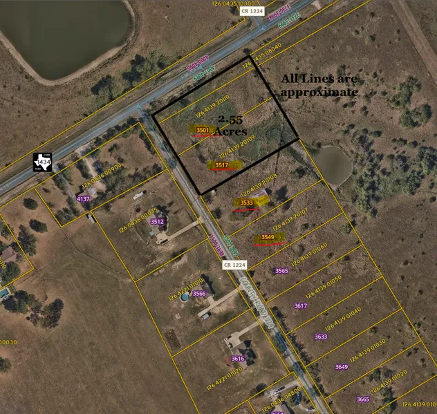Research Parcel Information3501 County Road 1224, Cleburne, TX 76033. FM 1434 SE to County Rd 1224. Turn left (south) on 1224. Property on North (left) side of road next to house on hill. Ranch gate with Essex Properties sign on front.