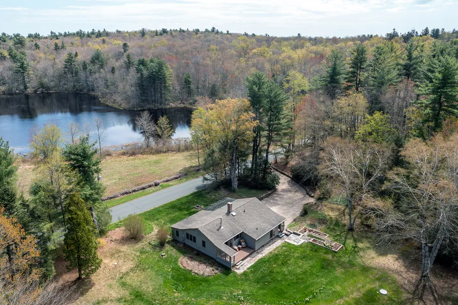 Outside, The spacious front porch offers the perfect sunny spot to watch a family of ducks patrol the pond across the way. Raised garden beds await for spring planting surrounded by a stone patio. Daffodils dot the yard in joyful clusters. Stone walls line the front of the property. Pastoral views in all directions and the one side of the property is protected. Brimming with warmth and soulful simplicity, this well-loved home is the perfect escape to the good life.
