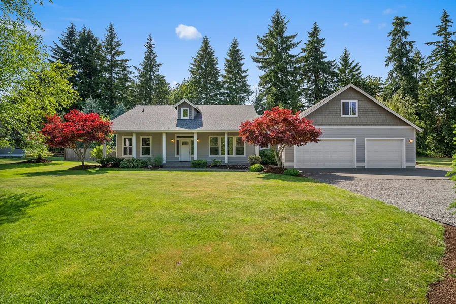 Situated on a 1± acre level lot, this custom 2870± sf rambler w/upstairs bonus room is built to impress. Functional split floorplan with expansive primary bedroom features vaulted ceilings, 5 pc bathroom & walk-in closet. Kitchen boasts hardwood floors, stainless appliances, bar seating and a breakfast nook with dining room adjacent. French doors open to oversized patio with gazebo in a fenced backyard that backs up to a greenbelt. Bonus room with half bath offers possibilities as a media room or a guest suite with bathroom plumbed for a shower. Massive 1260± sf 3 car garage plus an area outside for RV parking with hookups. Easy access to Chehalis Western Trail and under 10 mins from downtown Olympia, enjoy the privacy without sacrificing proximity.