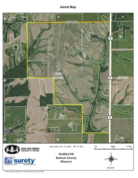 This 354 m/l acre property located nine miles West of Milan on HWY W. The land has 1 pond stocked with Bass, Crappie, and Channel Cat. There are 301 m/l tillable acres showing at $170.00 per acre but with some clean-up possibly more. This land is tiled and terraced. This property also has great hunting, with a $15.00 per acre hunting lease that brings your total income to $56,480.00 with a little over a 4% return rate at asking price. Please call Andy Boyer for your own private showing 636-295-1476. *Property lines are thought to be accurate but are estimated.*