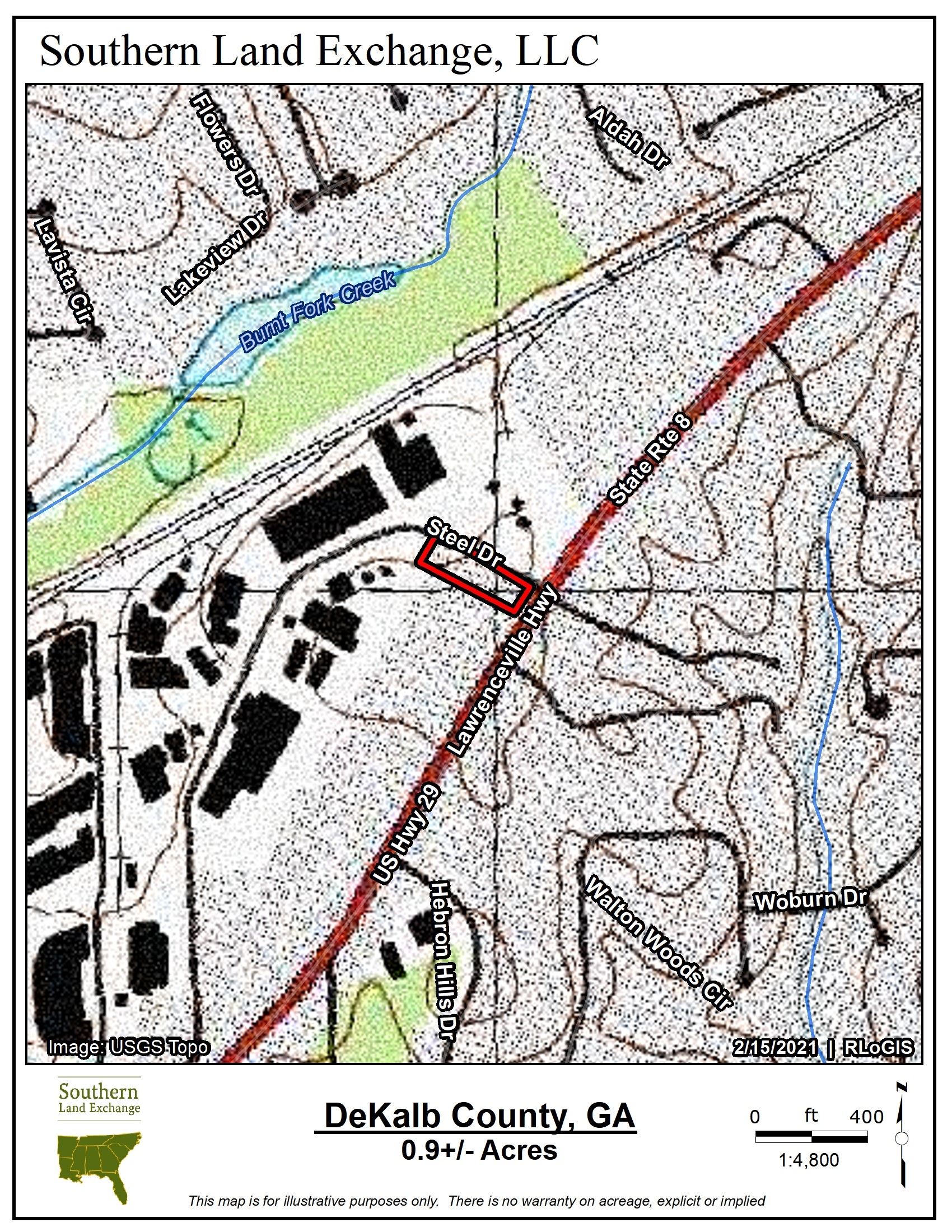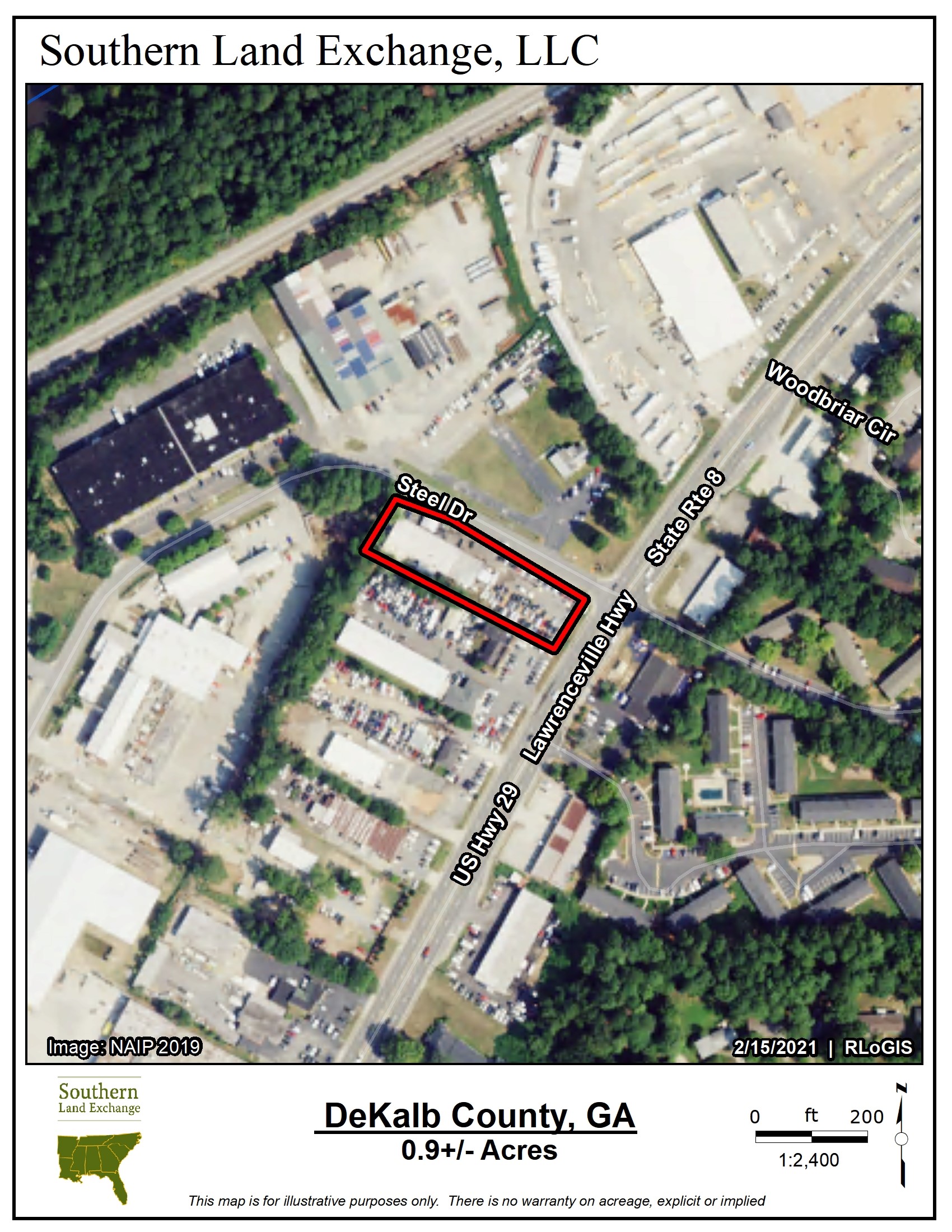 300ft of frontage on Steel Dr. & 100ft of frontage on Lawrenceville HWY.