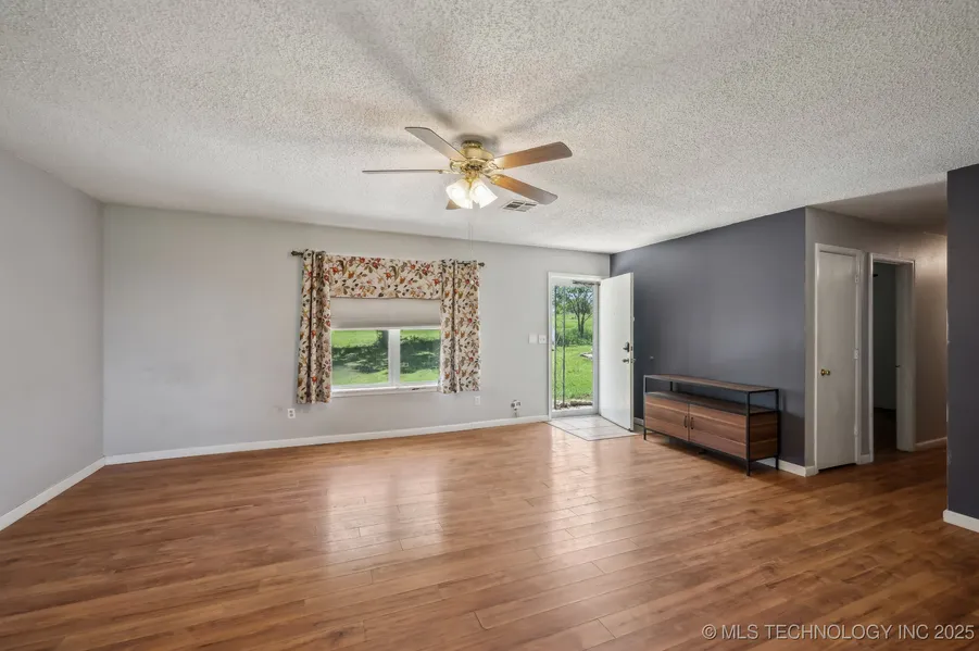 Country living at its best! Rare 1 acre property with quiet country surrounding it. Only a few minutes away from downtown Bristow on a road that ends nearby - so very little traffic! This home has previous updates including laminate floors, oak kitchen cabinets, solid surface kitchen countertops and vinyl windows. It needs cosmetic work – primarily interior paint and some drywall repair. The oversized 1 car garage (348 sq ft per CH) includes a storm shelter. An additional shop building is approximately 15 ft x 25 ft with electricity and an overhead door opener - ready for tools, equipment or as another garage for a vehicle. Propane tank is leased and provides gas for the water heater and central heating system furnace. Wireless high-speed internet is available. Selling as-is. Bring your offer!