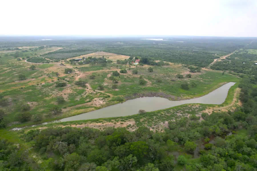 approximately 1,344 of the West Squirrel Creek. The terrain is flat to gently rolling with elevations ranging from 850-900. Vegetation consists of Huisache, Guajillo, Guayacan, an abundance of Cenizo. Trees consist of Mesquite, Live Oaks and some Cedar Elm. There is approximately 60-80 acres of open field land that is in improved grasses consisting of Tifton 85 Bermuda grass and Klein grass as well as others native to the area such as Blue Grama, Buffalo grass and Curly Mesquite. Native game includes whitetail deer, turkey, quail, dove and hogs. The West Squirrel Creek and earthen tanks provide excellent habitat, food and water for waterfowl as well. The ranch has standard height barbed wire fencing and is partially high fenced on the west and south boundary. Property is cross fenced into four pastures with excellent interior roads that traverse the property with some being paved. There are also many nice structural improvements including: