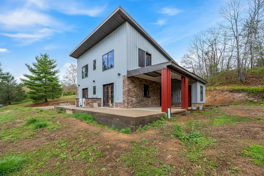 Secluded Retreat on 5.6 Acres Partially Finished, Full of Potential! Tucked away on approximately 5.6 acres of rolling countryside, this unique two-level home offers a total of 1,792 sq ft of living space and the perfect blend of rustic charm and modern potential. The first floor features an open layout with 1 bedroom, 1 full bath, living room, utility space, and a kitchen area awaiting your custom touch. Upstairs, youll find 2 additional bedrooms and 2 full baths. Quality finishes throughout include stone tile and hardwood flooring. The exterior boasts a striking stone veneer with metal siding above and a durable metal roof. This home is partially completed and ready for your finishing visionan ideal opportunity to personalize your dream space in a private, peaceful setting.