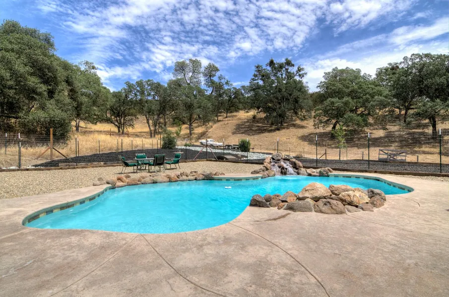 This home has been remolded and is simply breathtaking. Must see to appreciate the details the owner has put into this home. Kitchen features upgraded stainless steel appliances with see thru fridge, wood counters, concrete floors throughout the home. Too many upgrades to talk about. Refrigerator, washer & dryer & window coverings stay with the property. Sparkling pool for the hot summer days. Nice relaxing backyard that sits on 1.4 ac all fenced with elect. gate ent.