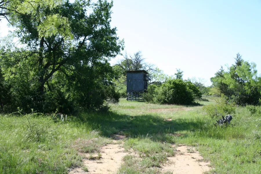 A small travel trailer will stay and is used for storage. Also included are 2 good hunting blinds, 2 older hunting blinds and 2 game feeders. The land is fenced on all but one side.