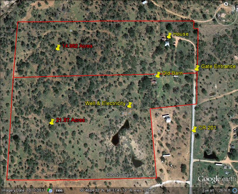 Research Parcel InformationEast on Hwy. 29 from Llano, north on CR 201 where county road dead ends into property.