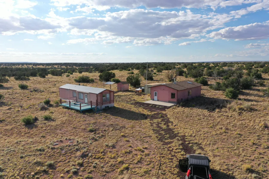 Upon entering through your front gate, you will find a 2 bedroom, 14x52 mobile home affixed to the property with septic system in place, an 1100 gallon water tank, all powered by your very own solar panels housed in a solar shed. Next to your home sits a 22x40 foot workshop atop a concrete slab for all your recreational needs, and equipped with a wood burning stove. Not to mention the conex storage container to keep your supplies out of the Arizona weather.