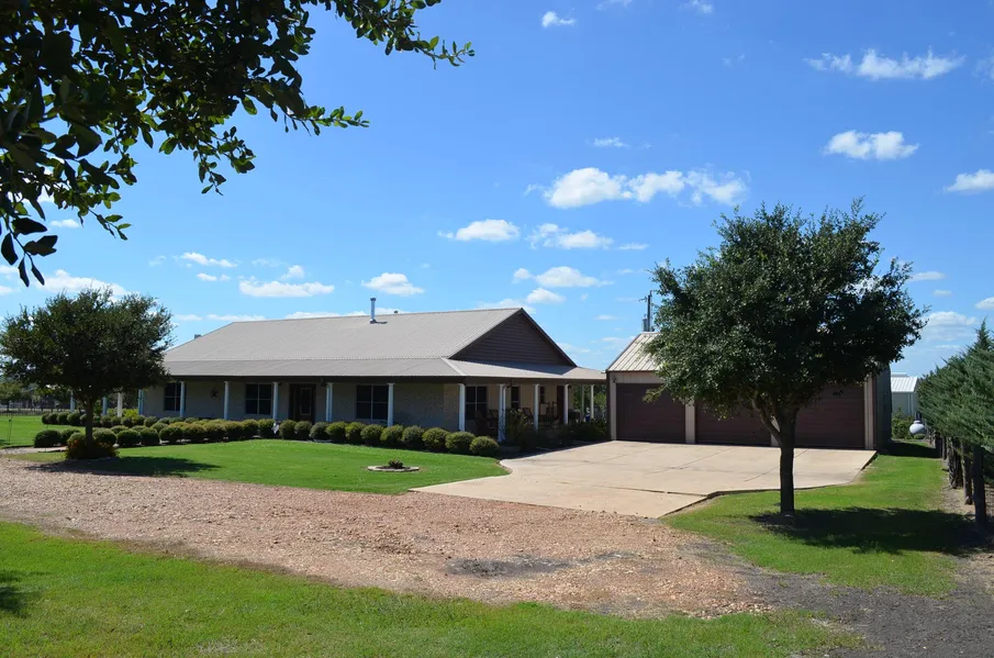 Exceptionally updated country paradise on 16 acre hillside w/option for additional 16 acres! Spacious all-brick 3/3/3 with 2,000 sqft wrap-around porch. Granite island kitchen w/custom red oak cabinets & breakfast bar, new 16 seer A/C, battery back up security system, updated granite baths & ceiling fans throughout. Multiple garden areas & fruit trees w/sprinkler system & drip irrigation, 5 metal barns, 604 ft well & 2acre pond. Fenced w/private automatic entry gate. Country living w/city amenities!