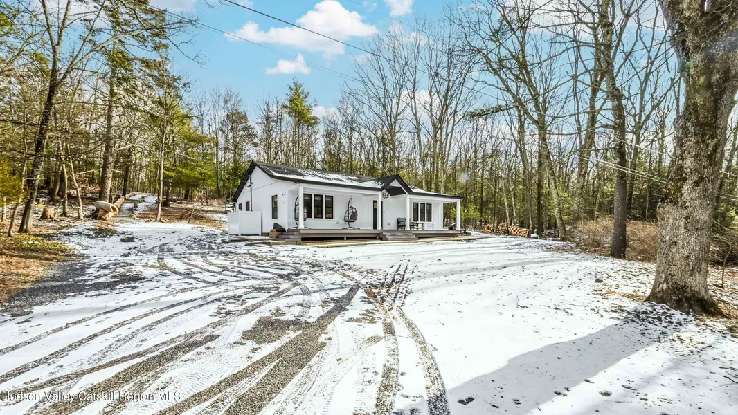 Stunning fully renovated modern Ranch on one acre in beautiful Saugerties, NY. With its open-concept design and high-end finishes, this property is ideal for those who appreciate both style and functionality. Key features of the home include a Gourmet Kitchen with sleek quartz countertops, Energy Star appliances, custom-made oak range, wine fridge and plenty of cabinet space, making this kitchen ideal for all your culinary needs. The house has a spacious open layout connecting the living and dining areas. Perfect for entertaining. There is even a cozy electric fireplace that adds warmth and ambiance on cold winter nights. Each of the three large bedrooms has ample closet space, brand new windows and a smart mirror in each room, making it a perfect place to retreat to after a long day. The principal bath features a nice sized shower and a relaxing jacuzzi soaking tub. There is also a separate laundry room with washer and dryer included. The outdoor space offers an abundance of extra living room in warmer weather and for entertaining. Follow the custom-made walking path to connect with nature that surrounds the property or sit on the patio and relax. The bonfire area is perfect for evening gatherings under the stars. The beautiful, spacious front porch is so inviting and makes it easy to relax with a cup of morning coffee. Additional Features include: Convenient entry way mudroom, brand new whole house air conditioning and heat and new spray foam insulation for energy efficiency. Brand new plumbing and electric. Brand new hot water heater. Close to the town of Saugerties and Woodstock and tons of stores and restaurants. Minutes to NYS Thruway. Close too many outdoor activities. This home is a true masterpiece, combining modern amenities with thoughtful design. Don't miss out on the opportunity to make this dream home yours! Contact us today to schedule your private showing.