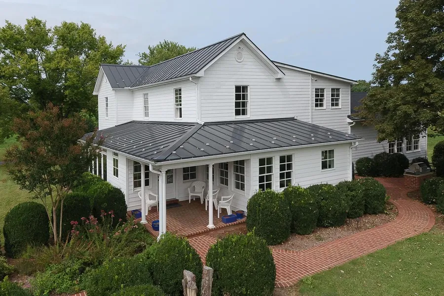 From the gourmet farm kitchen, to the living room & fireplace overlooking the lake, to the comfortable living areas throughout, down to the brick floored walkout destination room, complete with massive stone fireplace and timbered ceiling, this updated, large 4-5 bedroom/3 1/2 bath main farmhouse is very inviting. Beautiful wood floors are found throughout, except for the baths and a large tiled sunroom. Brick patios for dining & relaxing bring in the countryside. distant mountains, & lake. A two car studio-style garage sits nearby.