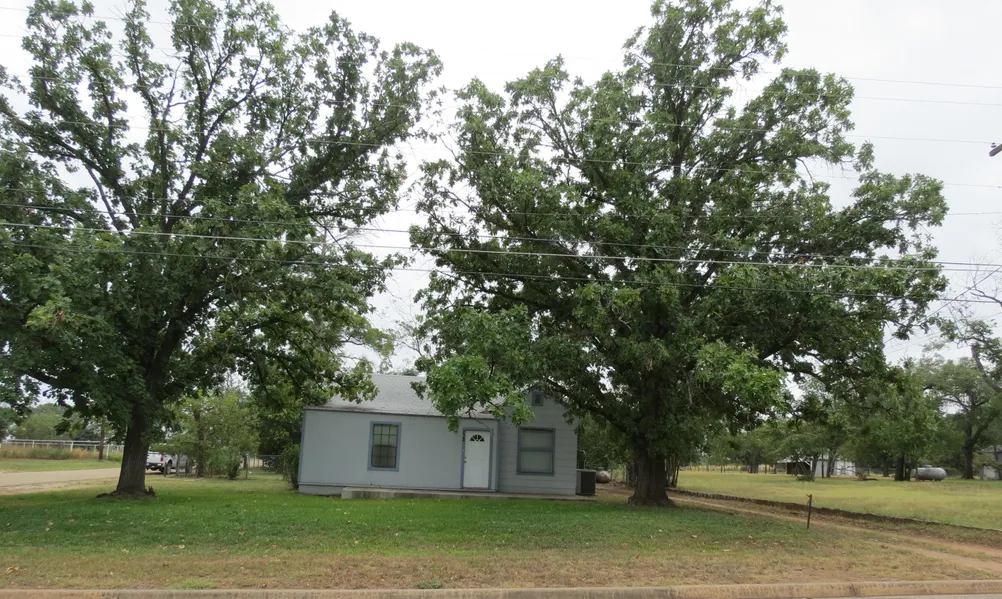 Modest three bedroom two bath home with central heat/air on a huge .5 acre lot! Mature Burr Oak trees, pecan, and pine trees provide marvelous shade and a patio in the back makes a perfect entertainment area. There is plenty of storage with an approximately 800 sq. ft. Quonset storage building and another metal storage building in addition to the detached garage with shop. The fenced acreage in the back is perfect for a livestock project or garden.