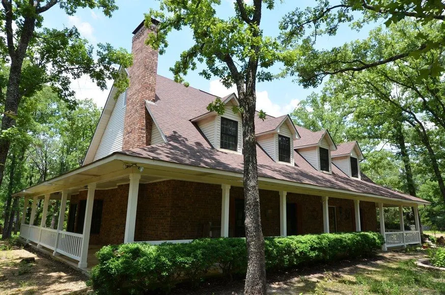 Wooded retreat! 4-3-2 prox 3,478 sq ft 2-story home nestled on 37+ acres w 2 ponds, guest house, workshop w elec & mult storage bldgs. LR features brick WBFP+built ins. Butcher-block island+breakfast bar, 2 sinks & tons of storage in Kitch! Bay window & built-in hutch grace formal dining while French doors lead to sunroom*Master suite w office area&bath*Covered wrap around porch*Covered picnic area*Abundance of shade trees*