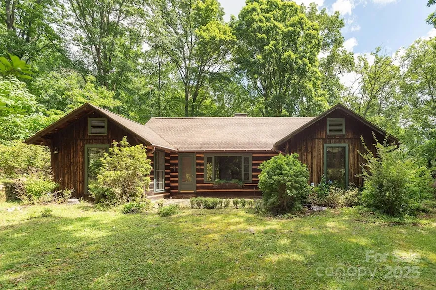 Benefit by being surrounded by natural fauna on just over 37 acres that affords seclusion & privacy but conveniently located to amenities. Main home features an exterior with stacked Log, hand hewn Lumber & amazing stacked stone chimney. Flagstone front and rear patios. Spacious Kitchen highlighted by cabinetry with original Swiss pictorials. Large Charleston style windows throughout the home. Beautiful Wormy chestnut paneling accentuates the dining room. Great room features a large Fireplace with stunning hand carved Mantle, 8 wide plank hardwood floors & large storage closet. Two sets of French doors graciously lead outside. Primary bedroom features wood paneled walls & Built-Ins. Guest Bedroom also features wood paneled walls and hardwood floors. Cottage ca 1955 features sleeping porch, Hardwood FLS, Kitchenette & charming Vermont Castings gas stove. Specimen plantings surround the home. Carport, 22 x 16.6, Shed, 14 x 17 & Chicken Coop. Short drive to downtown Columbus or Tryon.