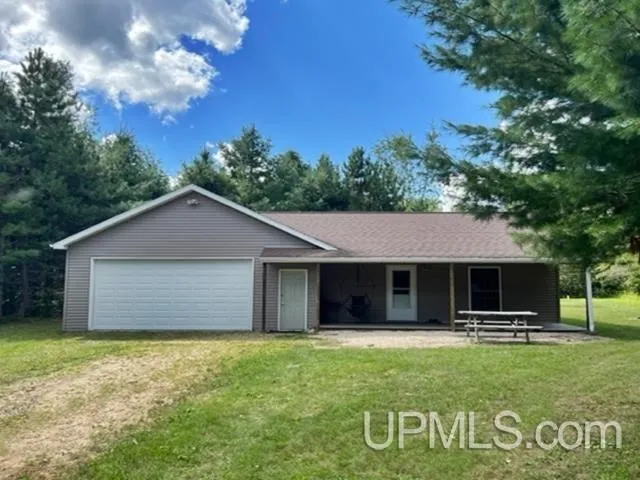 Well maintained newer 1 BR, 1 bath home located in a quiet and serene area. Features an open concept KT/LR primarily heated by a woodstove, T & G cathedral ceiling, and the large 24 x 20 BR can be converted into another BR. Partial bsmt plumbed for 2nd bath (has toilet now). The bedroom is on slab. The home comes complete with most of the furnishings! Att. 24' x 10' shed/garage. Shed. RV hookup. Potential artesian well. The 37.31 acres offers a diverse mixture of hardwoods, clearing for food plot, multiple trails with deer stands, and public County Land is across the rd. Easy year around access, on a dead-end town rd, and you can ride for miles on the ATV/snowmobile trails. This is the way up north was meant to be experienced!