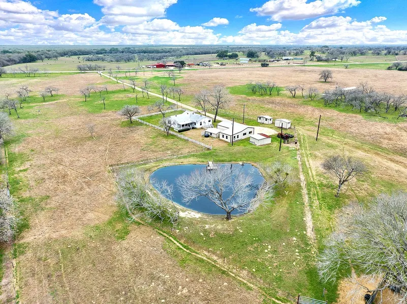 Escape to the countryside with this lovely farmhouse surrounded by large pecans placed on a picturesque 37.5 beautiful acres! Enjoy the views from the front or back porch, which is complete with a swing to relax on! The home has large picture windows in the living room to enjoy the front pasture views and deer feeder towards the creek. The house has 3 bedrooms with an office, 2 bath, and a laundry room. Property has improved coastal-bermuda grass that will provide prolific hay or ample grazing for livestock. Behind the home is a manicured stock tank/pond fed by a well; wooden pier built on it is perfect to enjoy your south Texas pond or to wet a line and enjoy catching a fish. The bordering creek is a wildlife sanctuary, it provides watering holes for the deer, turkey, and all the other types of birds and small animals that inhabit the riparian area. The owner learned to swim in Sandies creek as a child. The property features an insulated metal shop w/ 3 rollup doors on a slab, storage buildings, pens and 2 water wells. An additional area with a metal cover, septic, and electric hook up(possible rv spot or second homesite); Great location, with valuable access off Hwy 97 (1604 ft of frontage), situated between Nixon and Gonzales. A true retreat for families and nature lovers alike, seclusions but conveniences to the surrounding amenities.