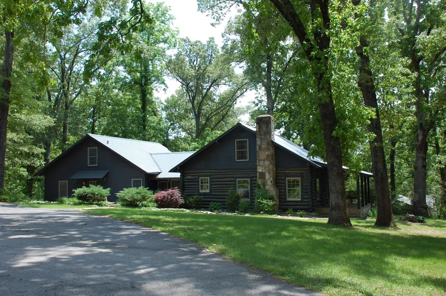 Beautiful Log Home Built in 1937! Renovated with Additional Living Space - New Wiring and Plumbing - Whitewashed Southern Pine Ceiling - Sky Lights - French Doors in Living Room - Pretty Kitchen with White Cabinets and Arched Doorway to Formal Dining - Beautiful Spacious Master Suite - Hardwood Floors - Native Stone Fireplace - Detached 2 Car Garage - Just Beautiful Setting with Scattered Trees - Picture Perfect!