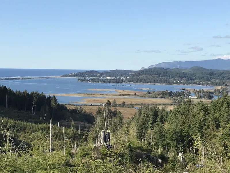 Fabulous views of the ocean, Siletz Bay and estuary enrich these 37+acres of timber, hiking trails, natural habitats and quiet. Mountain views to the east complete the feeling of serenity. Natural springs on property and year round George Creek frontage. Large level pad on bluff for RV, yurt [?!] or home [with zoning change.] Rare opportunity for quiet, private acreage close to town & Salishan resort.
