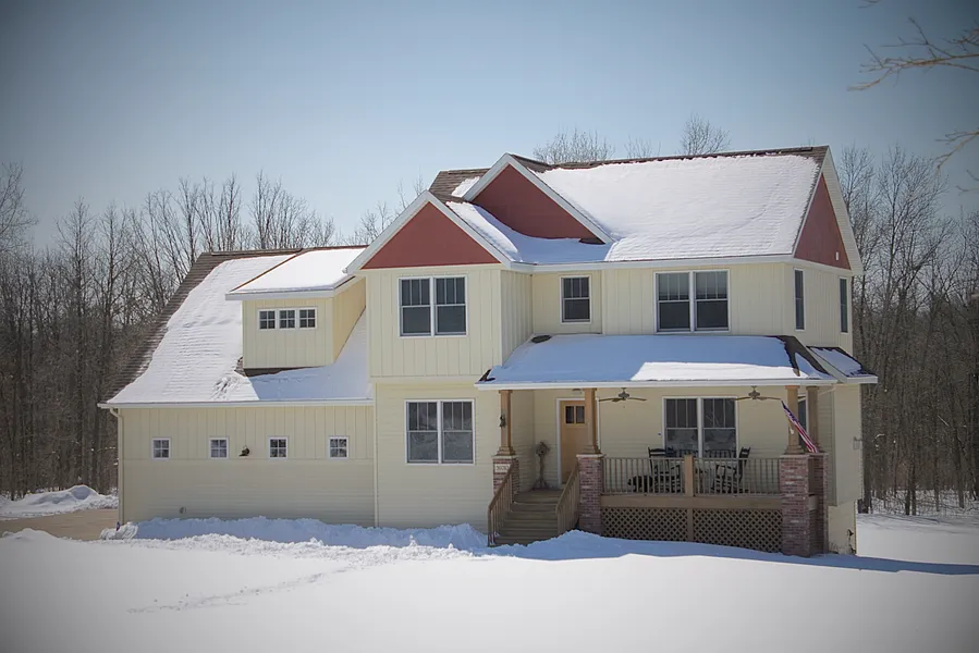 Stunning, c ustom built Stonemill Farms two story Sunrise River estate with 4 Bedrooms and 3 Baths on over 37 acres. Features 1,250 feet of Sunrise River frontage, maple floors, transom windows, sprawling master en-suite, enameled fireplace mantle, gourmet kitchen with Cambria granite counter top, 9' knockdown ceilings, Anderson Windows, white enameled and maple built-ins throughout, backup propane generator, security system, surround sound, large screened-in porch and deck, stairwell newel light posts, steel siding, heated attached garage with in-floor Wirsbo heating supplied by wood boiler. Long driveway is entirely recycled asphalt. 42x66 pole barn with loft, wood boiler, (200 amp, daylight drain, overhead doors, insulated floor, and hydrant). Wooded river trails & More! Explore this property via the 3D virtual tour!