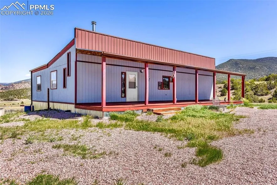 Experience your own private Colorado sanctuary just 12 miles from Canon City. Set on more than 36 pristine acres, this 1,120 SF frame 2017 built home offers sweeping panoramic views, unforgettable sunsets, and abundant wildlife best enjoyed from the inviting front porch or expansive deck. The heart of the home is the beautifully updated kitchen featuring elegant Hampton Bay cabinetry, stainless steel appliances, a garbage disposal, an on demand hot water heater, and updated flooring. An impressive living room addition showcases vaulted ceilings finished in tongue and groove Blue Beetle Kill Pine, filling the space with warmth and character. Large windows and a sliding glass door flood the room with natural light and provide access to the 300 plus SF deck, perfect for entertaining or quiet evenings outdoors. The spacious 22x16 bedroom offers direct deck access and a generous 4x12 walk in ...