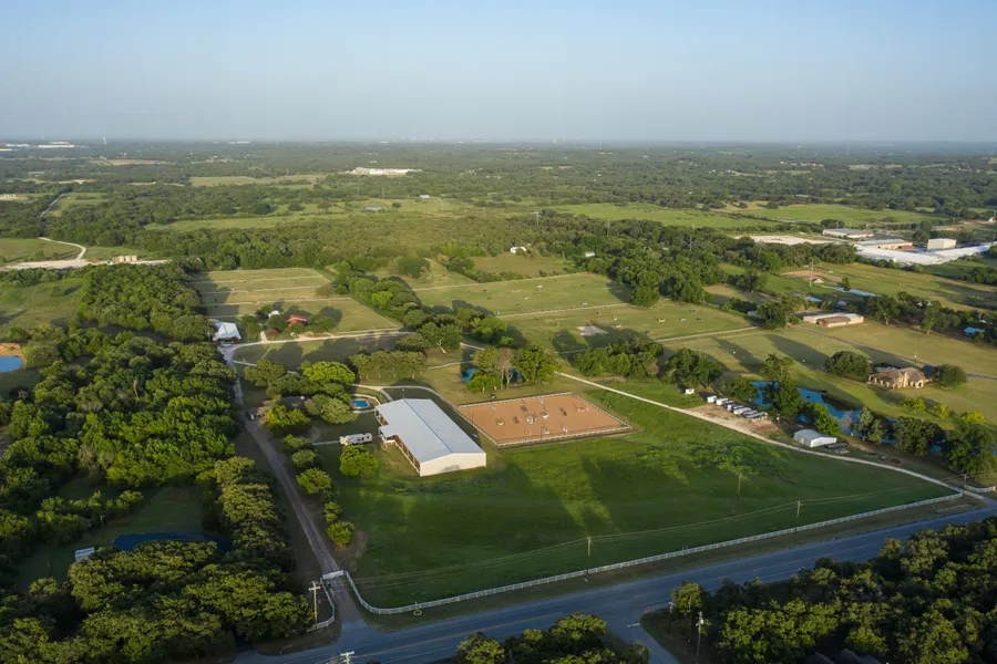 Under 30min to Downtown Ft. Worth, the beautiful Tempus Eventing farm can be yours! Complete with updated 4bd 3bth home & pool, 2 nice barns, irrigated & lit covered dressage arena, outdoor lit showjumping arena, managers home, RV hookups & trailer parking, XC course, 9 paddocks currently, hay barn & workshop, big old trees, creek through the property, and even a pond! The layout of this original ranch house has been opened up to host a bar area suitable for entertaining while still offering a formal dining & 2 living areas. At the back living area, or sunroom, you can see both barns and a lot of serenity! The barns offer 25 stalls w room for more, as well as several tack & feed rooms & a lot more features! See pics!