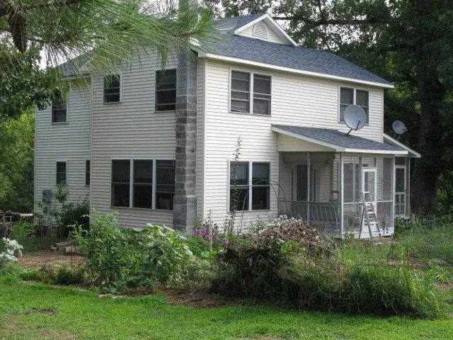 Huge kitchen and living room. Home was remodeled in 2001. Four organic pastures,springs and branch,barns,fencing and sheds. Wood heat and gas wall unit. Already set up for farm animals. Numerous fruit and walnut trees. New refrigerator and range/oven. Two screened-in porches.