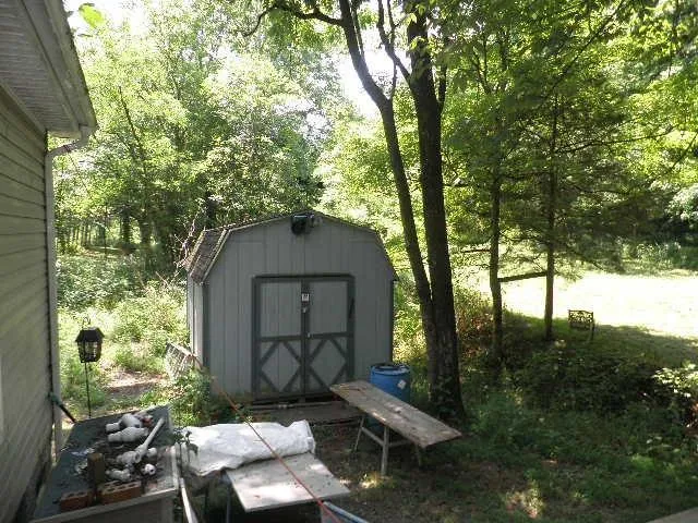 Very private property. Can not see house from the road. Has a large chicken fenced in area, storage building and a creek.