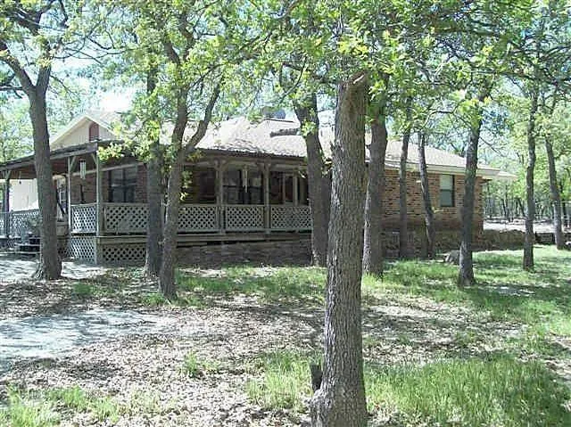Quiet, secluded home with a country, 3/4 wrap porch nestled in the trees. Three bedroom, three bath. It has a large barn-shop,two wells, a pond and creek, complete with livestock fencing. Recent improvements to the property are an electric gate, an RV plug, kitchen and dining area recently tiled, a patio was built off master bedroom and fenced in yard just added. Call Fama Harris at 817-781-2481 for showing.
