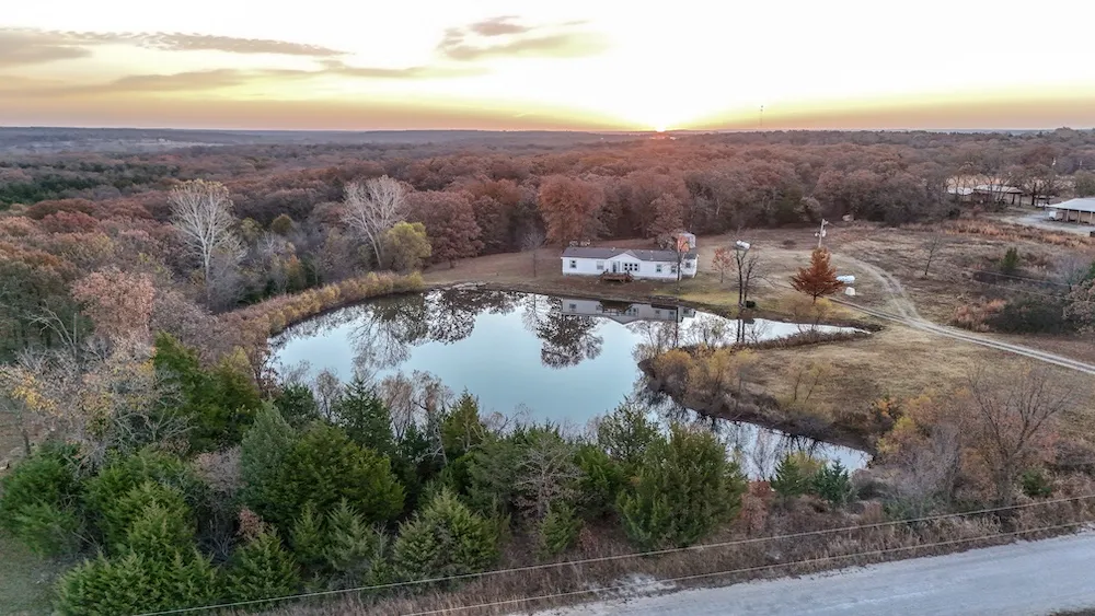 Located less than 40 miles from downtown Tulsa, this 37-acre property offers a combination of rural privacy, outdoor recreation, and convenient access to nearby towns. The focal point of the land is a beautiful one-acre pond stocked with catfish and perch, providing year-round fishing opportunities and scenic views from the back porch of the home. The setting blends peaceful water frontage with thick timber in the rear portion of the property, making it an excellent habitat for deer, turkey, and other Oklahoma wildlife.The residence is a 2003 Solitaire manufactured home positioned to overlook the pond, creating a comfortable and scenic living environment. Inside, the home features three bedrooms, two bathrooms, and an open living room with large windows that allow plenty of natural light and a clear view of the water. The layout offers functionality for daily living while maintaining a c...