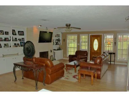 This home offers a great open floor plan. The living room is a nice size with many built-ins, fireplace, laminate wood flooring, crown molding, lots of natural light, and is open to the kitchen and dining area. The open concept makes a great place for entertaining or enjoying time with the family. Kitchen has plenty of counter and cabinet space, and stainless steel GE appliances. Refrigerator will convey in the sale. The mud room/laundry room can be entered from the back patio closest to the garage. The washer and dryer will convey in the sale. The master bedroom and two additional bedrooms are downstairs, which have laminate wood floors. There is a hall bathroom for the two additional downstairs bedrooms. The master bedroom has a large walk-in closet and full bathroom with two vanities and bathtub/shower combo. Upstairs is another large bedroom with a huge closet and another full bathro...