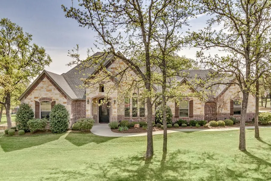 A combination of Granbury Stone & brick were joined to create this custom home that is perfectly positioned on a 1 acre lot in the gated community of DeCordova Ranch. The Kitchen includes granite,pot filler,large pull out drawers, 5 burner cooktop & 2 pantries. The backyard is a summer delight with heated saltwater Pebble Tec Pool & Spa, outdoor kitchen & living area. Tankless water heater, 3-zoned HVAC units,& radiant barrier are a big plus!