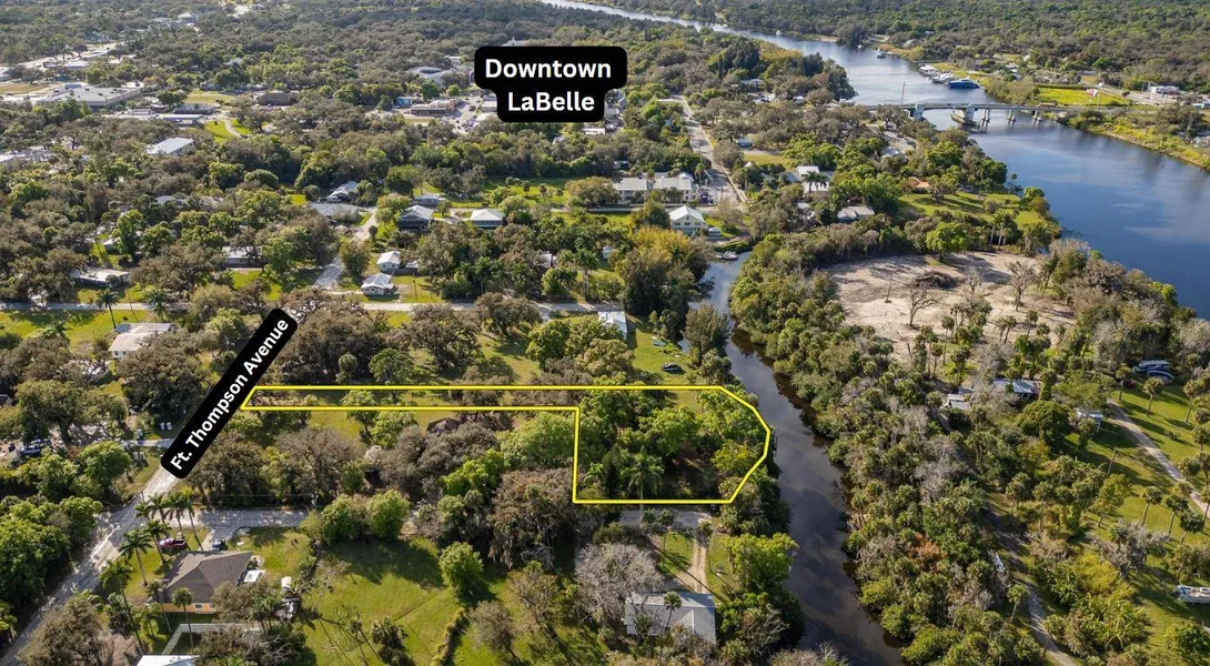 HIDDEN AWAY, YET IN THE HEART OF LABELLE, IS THIS 1+/- ACRE HOME SITE BOASTING A PARK-LIKE SETTING AND ITS OWN DOCK AND BOAT SLIP! Cleared and ready to build with lovely trees including old oaks throughout with a 35' deeded ingress and egress portion of the property for your private driveway and entry. This location is a hurricane hole to protect your boat from wake on the new Caloosahatchee River channel. Fish from your dock or launch your boat from the site also! This location has city water and sewer line availability and is within walking distance of downtown for easy enjoyment of Barron Park, the LaBelle library, restaurants, banks, shopping, etc.! Located in the quiet Fort Thompson area of LaBelle for one of LaBelles best addresses. FIND YOUR PEACE & QUIET HERE!