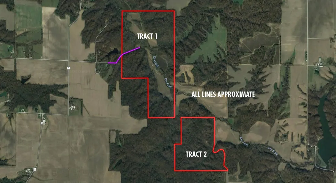 374.75 +/- acres located in Macoupin County, IL is being sold at online auction in 2 tracts. The property is located west of Walker Rd. and east of 2nd. Rd. in Gillespie Township and it includes mostly timber and some tillable ground. Tract 1 includes 60+/- tillable acres which consists of 84% Wakeland Silt Loams and 14% Camden Silt Loams with a crop productivity index weighted average of 124 and the remainder in timber. Tract 2 is 119.96+/- acres that is all wooded with road frontage on the east side along Walker Rd. The over 300 +/- total wooded acres offers a great place for recreational activities including hiking, camping, equestrian, ATV’s, whitetail deer and turkey hunting. Visit the Tarrant & Harman website to register.