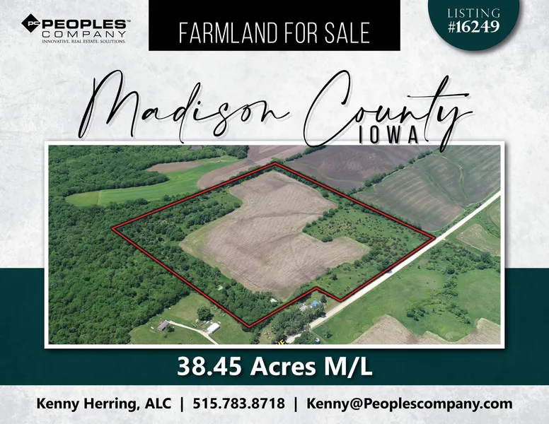 Peoples Company is pleased to offer 38.45 acres m/l in Madison County, Iowa that would serve as an excellent location for future building opportunities. This farm is conveniently located directly North of Truro in Section 9 of Ohio Township and within the Interstate 35 Community School District. The property offers a suitable building site for nearly all home types and would also accomodate for livestock and hobby farm activities. Electric service is provided through Farmers Electric Coop, and rural water is serviced through Warren Water District, which are both located at the road. There are approximately 20 acres currently in row crops carrying a CSR2 of 88 with the primary soil type of Macksburg silty clay loam and Givin silt loam with slopes from 0 to 5 percent. Additional land could be cleared and clean up to add several more tillable acres. Recreational activities unlimited. Locat...