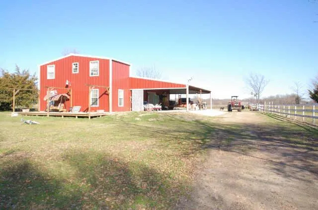 Custom 4 bedroom 3 and a half bath is surrounded by Core land on 3 sides. Unfinished Secluded home has view of Cooper Lake from upstairs living area. Beautiful 38 Acres with 3 ponds. Two Story Barn with 2 bedroom full apartment. Downstairs master and office or 4th bedroom. Sit on Porch and Watch as Deer, Hog and other wildlife roam through property. Additional Barn, Shed and Equipment shed. Fenced and cross fenced.
