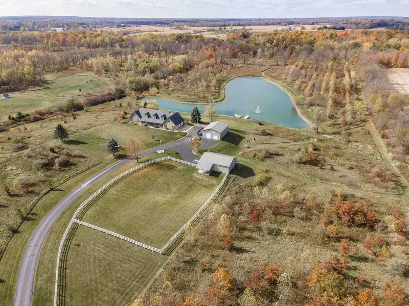 As you drive back the winding asphalt driveway you will come upon this breathtaking 38 acre property where any outdoor enthusiast is sure to enjoy this gorgeous piece of property. Beautiful sunsets, abundance of wildlife, 5ac stocked pond, and manicured trails. The 3,744 sq ft home offers the following amenities: 3 bedrooms, 2 baths, geothermal heating system, 2 gas log vented fireplaces, a bonus room above the garage with a private deck, granite counter tops, master bath with a walk-in tile shower an jetted tub, an ADT alarm system, whole house generator, all appliances included, new laminate & carpeting just installed, open concept kitchen, dining and family area. Also includes a 30x40 heated pole barn with loft and another 30x40 pole barn with 2 horse stalls, vinyl fencing, an ultimate deer condo stand, a hot tub with enclosure.
