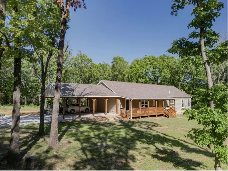 Nestled on 38 acres of secluded countryside, this new ranch style residence epitomizes the essence of country living. With over 2,000 square feet of thoughtfully designed space, this home offers a blend of rustic charm and modern luxury, promising a retreat from the bustle of everyday life.Upon entering, you're greeted by an expansive living area illuminated by natural light, anchored by a striking stone covered wood-burning fireplace--a timeless centerpiece for gatherings and relaxation alike.The heart of the home lies in the custom kitchen, featuring granite countertops, a gas cooktop oven, and a spacious island perfect for family gatherings. Adjacent, the dining room opens onto a private porch, ideal for enjoying morning coffee or evening meals surrounded by nature.The master suite offers an escape, complete with dual vanities, a modern walk-in shower, and a sizable walk-in closet. On the opposite side, two additional bedrooms and a well-appointed bathroom provide comfort and convenience for guests or family members. Bonus would be the mud room combined laundry area that is heavy with storage provided by custom cabinetry.Outside, the acreage invites exploration, with winding trails meandering through wooded landscapes and leading to a peaceful stocked pond. A covered front porch offers the spot to admire the scenery, while a two-car attached carport and a new shop building with automatic doors provide ample storage for vehicles and outdoor equipment.Experience the allure of secluded country living with this exceptional property--an inviting retreat where every detail has been meticulously crafted for comfort and elegance. Welcome home to your private country sanctuary.
