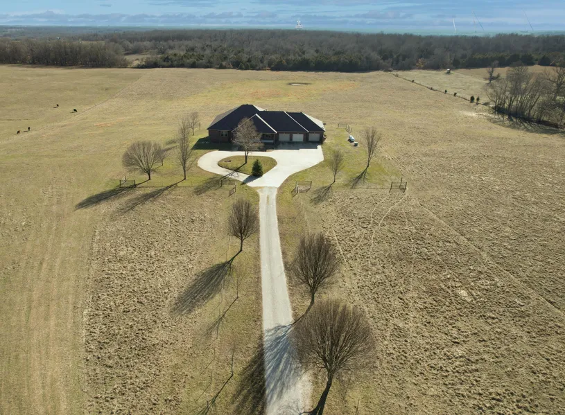 Pride in ownership shines with meticulous attention to detail & quality of workmanship in this all brick walkout basement home on 39 M/L acres. Boundless opportunities offer creative solutions for today's housing needs: multigenerational, work office, home school etc. Let the warmth of this property welcome you with soaring ceilings, hardwood floors & natural light. Your great room is the heart of the home with ducted wood burning stove & open concept plan pouring into the kitchen with bar, island, granite, huge pantry, gas range & abundant prep space. Your master retreat offers crown molding, an ensuite with soaking tub, walk-in shower, dual vanity & huge walk-in closet. The main floor has 2 additional bedrooms, full bathroom, laundry with half bath & sunroom with stunning views, own heat/air & wet bar. The versatile basement has a mini kitchen, large bedroom, full bath & bonus room perfect for a theatre, craft space, home school etc. You'll love the MASSIVE storage area with shelving & storm shelter including new concrete. Plus you have 2, count 'em TWO attached shops! A main floor garage shop has 220, pulley system, gas line, electric car charging outlet, hot & cold water, 20+ outlets & fishing pole holder. Downstairs you'll love the John Deere shop accessed through a hidden bedroom closet. NEW within the last few years: 3 year old roof with 50 year shingles, pressure tank, water heater, water softener & dishwasher. Other benefits include: dual zone HVAC, underground electric, mudroom, walk-in closets in all bedrooms, sump pump, patio wired for hot tub & sauna. Bring your lemonade & rocking chairs to enjoy expansive front & back covered porches overlooking your land perfect for livestock, ATVs & a buffer from your neighbors with open pasture, pond & fencing. Enjoy a country setting just minutes to Hwy 44, restaurants, shops & hospitals. There's no better backdrop for the memories you'll make in the next chapter of your life here at home.