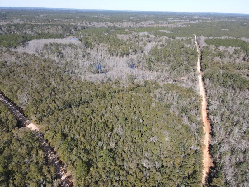 The Crossroads Tract has an estimated 1500’ of county maintained dirt road frontage on Johnston Quarters road & Booker road giving the tract tremendous external access. The internal access is great too. A powerline bisects the largest parcel so having a nice campsite or cabin on this tract is possible. Not many tracts this secluded have power access so this feature is a huge plus. There is no access to county water currently so a new we...