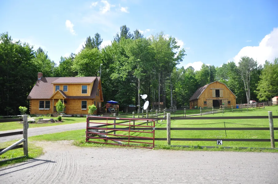 Also a 1300 square foot Northeastern Log Home with cathedral ceilings, custom hickory cabinets, German beech floors, granite in kitchen, custom stone fireplace, custom light fixtures, Buderus furnace, and separate panel for generator. Sited atop a completely dry basement with too many extras to mention.