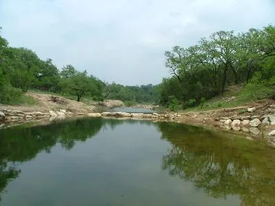 Waterfront Description: Hickory Creek Ranch features both sides of year-round Hickory Creek. A strong spring spills into Hickory Creek, keeping water flowing clean and helping to form a large pool, suitable for swimming and fishing, which is dammed by a reinforced concrete dam.