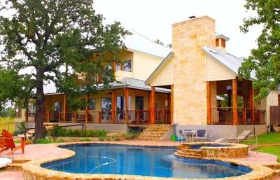 This magnificent Hill Country home consists of 3 bedrooms, 3 bathrooms and a professional kitchen. The guest house has 1 bedroom and 1 bathroom and is conveniently located near the pool and spa. This house has wrap around porches and 10-foot ceilings upstairs and down. The great room features a 26-foot ceiling with exposed trusses.