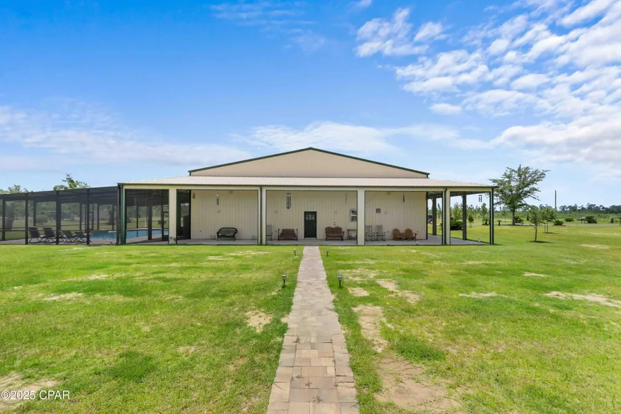 One-of-a-Kind 380-Acre Luxury Barndominium Estate | Recreational Paradise & Private RetreatWelcome to a truly exceptional opportunity -- a 9,600 sq ft fully insulated Barndominium on 380 acres of pristine North Florida land, located just 30 miles from Panama City. This multi-functional estate offers the perfect blend of luxury living, recreational freedom, and income-producing potential. Main Living Quarters (8,400 sq ft Heated & Cooled)2 Bedrooms + Loft Bedroom | 3 Full BathroomsOpen-concept living with 18' ceilings, custom pine walls, and epoxy flooringTwo fully equipped designer kitchens with pine cabinetry, granite countertops, high-end appliances, island seating, and walk-in pantrySpacious master suite features built-in cabinets, surround sound, electric fireplace, private pool access, and an oversized walk-in closetGas fireplace, two laundry rooms, and four HVAC systems for zoned comfortTankless water heater for energy efficiencyRecreation Wing (6,000 sq ft)Massive 100' x 60' climate-controlled space with three 16' x 12' roll-up doors--perfect for RV or equipment storageIncludes a full kitchen, full bath, and 1,000 sq ft storage roomIdeal for entertaining, business use, or indoor sporting activitiesOptional car lift and fully restored 1967 GTO negotiable with saleOutdoor OasisResort-style 40' x 20' heated saltwater pool with tanning ledge, waterfall feature, and full screen enclosure20' x 60' covered carport, covered porches, and landscaped grounds with full sprinkler systemGuest house, dog kennel, and 1,032 sq ft insulated/heated/cooled workshop with car liftLand & Lifestyle380 private acres with diverse terrain: pastureland, hardwoods, deer plots, and stocked ponds (catfish & bream)East prong of Bear Creek runs through the rear of the propertyMultiple pole barns, 5 shallow wells, 1 deep well, and 2 septic systemsAbundant wildlife: deer, turkey, black bear - ideal for hunting or eco-retreatProperty is 1 mile deep from State Road 20 for unmatched privacyEndless PotentialThis estate is turnkey and adaptable for various uses:Private residence or family compoundCattle ranch or equestrian facilityHunting & outdoor retreatCorporate or church retreat centerEvent venue or festival groundsLocation30 mi to Panama City, FL61 mi to Dothan, AL82 mi to Tallahassee, FL132 mi to Pensacola, FLAll furnishings are negotiable. Shown by appointment only. No expense spared--this is more than a home; it's a lifestyle.