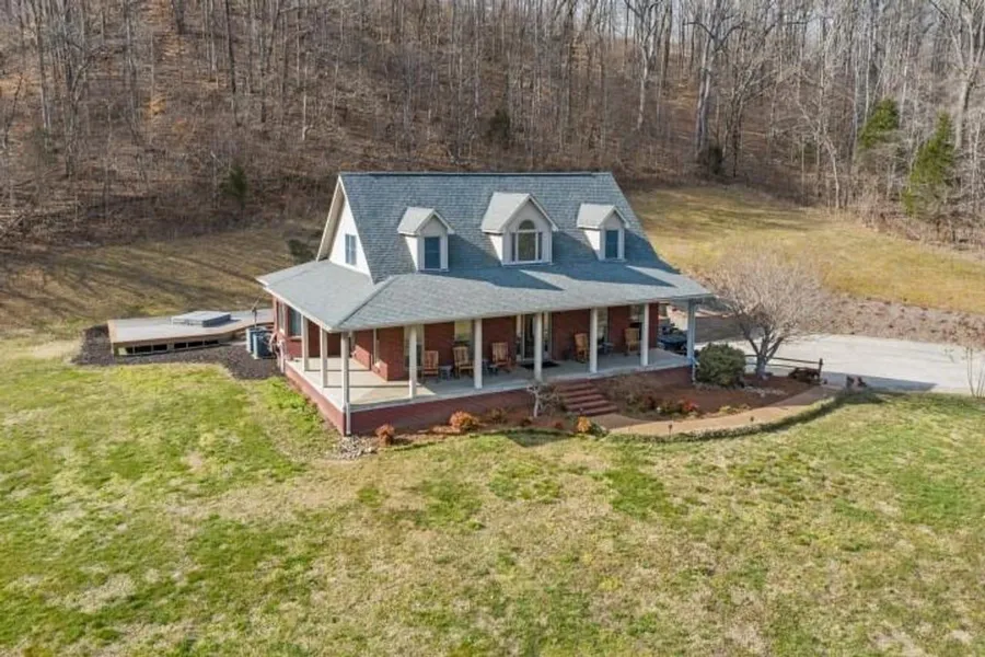 This 380 acres involves a 2,260sq' brick home with 3 bedrooms and 2.5 bathrooms, located just over an hour from downtown Nashville. It's situated on a grassy knob at the middle of the property at the end of a 1,000 yard private driveway.