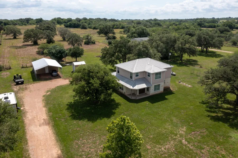 This spacious home features four bedrooms and two and a half bathrooms, with all bedrooms conveniently located upstairs for added privacy. The downstairs office provides a perfect space for working from home or managing household tasks. Enjoy the fresh country air from the comfort of the covered back porch, perfect for relaxing or entertaining. The property also includes a detached two-car carport and a workshop, offering plenty of space for projects, storage, or hobbies. Mature scattered trees add natural beauty and shade throughout the land. GVEC is the electricity provider, ensuring reliable service in this serene rural setting.