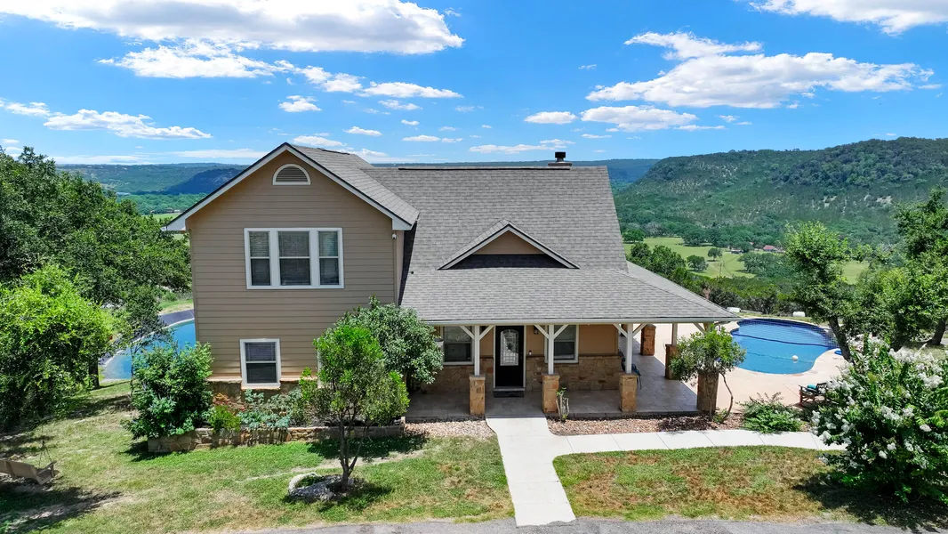 Nestled on over 7 acres of unrestricted luxury, accompanied with jaw dropping views and scenery, this Canyon Lake Estate is a sanctuary of peace and relaxation. Enjoy panoramic views of the expansive lakeside terrain from the tranquil setting of a private cul-de-sac. Conveniently located near Canyon Lake and the Guadalupe River, this residence provides unparalleled opportunities for water recreation, personal enjoyment or lucrative future developments/vacation rentals. This property offers two living quarters, the main dwelling consists of a two story home with 3 bedrooms, 2.5 baths, ample living and entertainment space. Directly adjacent to the main living quarters is a distinctive guest dwelling spanning a story and a half, complete with a fully equipped kitchen, luxurious bathroom, spacious living area, and a sizable loft-perfect for accommodating guests or creating an indulgent retreat for relaxation. This property is also host to the ultimate relaxation with an exquisite in-ground pool and expansive deck, with unparalleled views ideal for entertaining amidst natural wildlife. Enhancing the estate's allure, discover a charming pond for fishing and leisurely paddle boating-a serene oasis within your own backyard, reaching depths of over 15 feet. With endless investment opportunities such as both short/long term rental availability and the possibility of adding additional rental dwellings, this site is a must see. The property is currently being used as an AirBnB with bookings from now through December of this year. Further complementing this extraordinary site are additional amenities such as a sprawling greenhouse, a large workshop/storage shed, dog kennels, and a myriad of luxury enhancements throughout. Don't miss this rare opportunity to experience the epitome of refined living. Schedule your private tour today to immerse yourself in the unrivaled beauty and limitless potential of this exceptional property. No Restrictions, No City Taxes, No HOA.